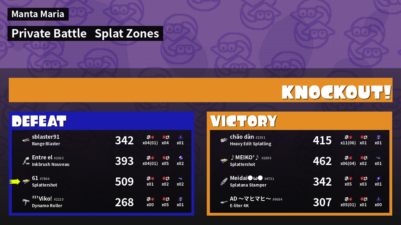 | Weapon | Splattershot ( Suction Bomb / Trizooka) | ||