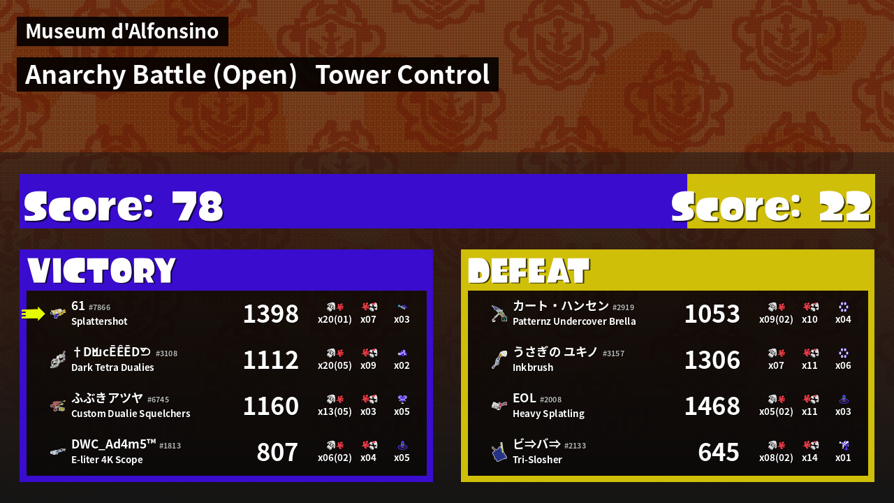 | Mode | Tower Control - Anarchy Battle (Open) | ||