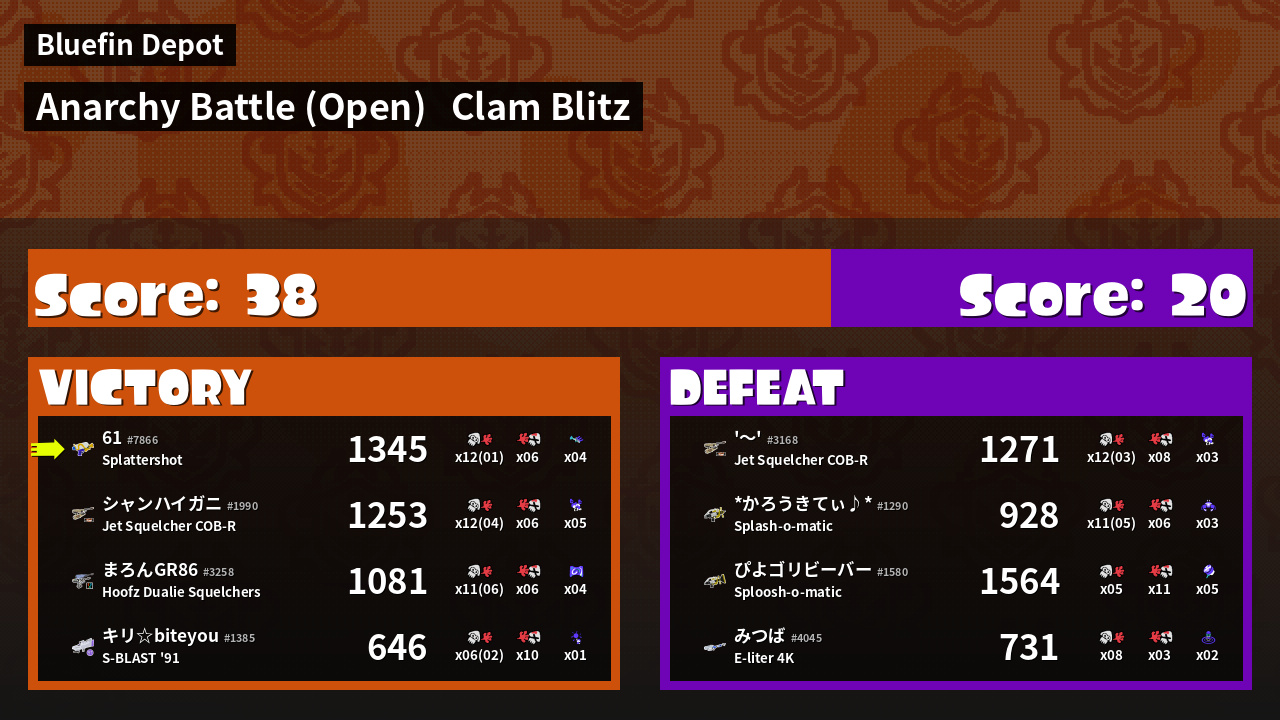 | Mode | Clam Blitz - Anarchy Battle (Open) | ||