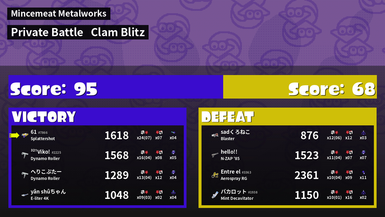 | Medals | #1 Overall Splatter #1 Turf Inker #1 Popular Target | ||