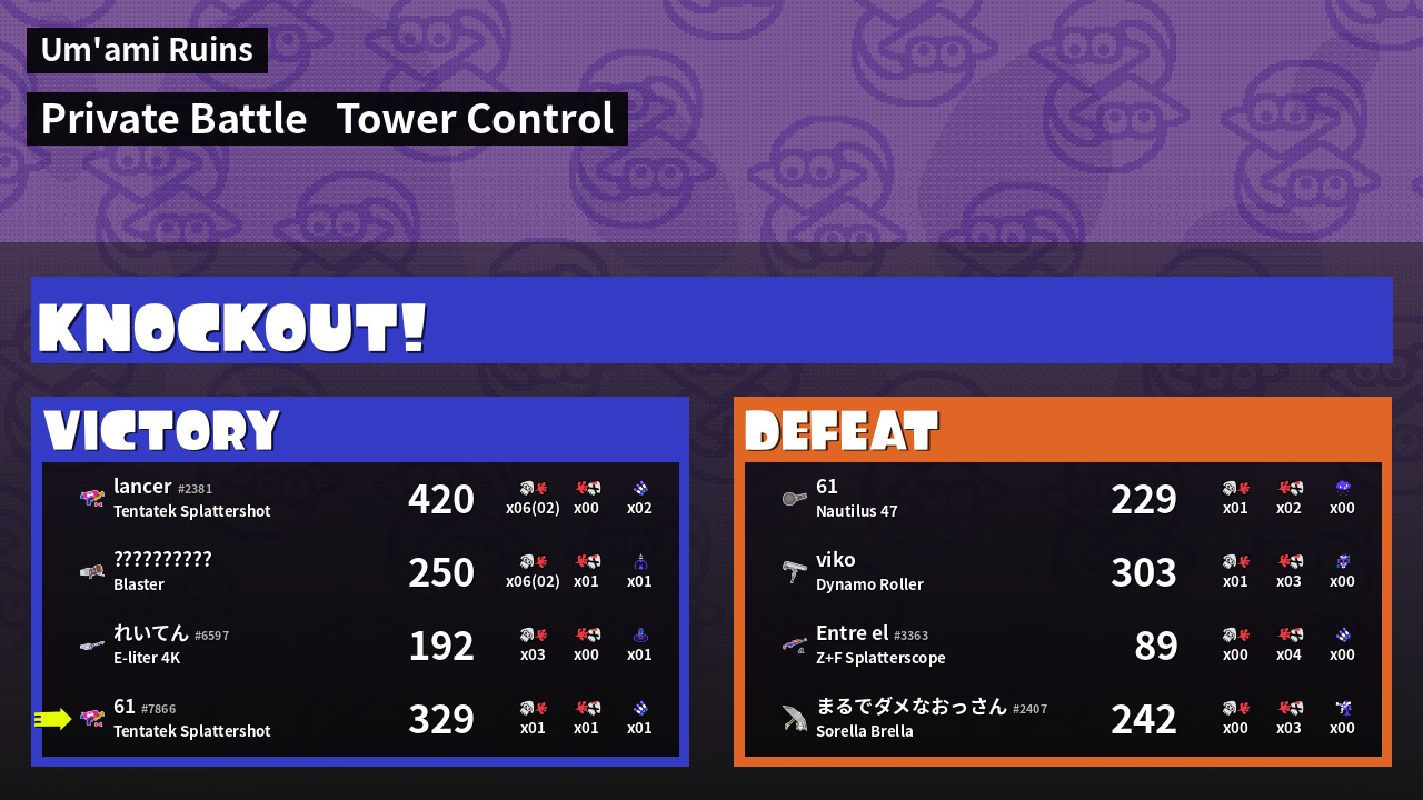 | Weapon | Tentatek Splattershot ( Splat Bomb / Triple Inkstrike) | ||