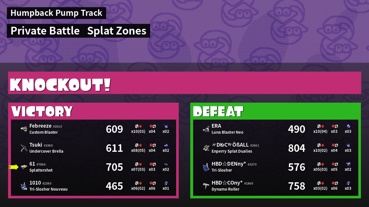 | Weapon | Splattershot ( Suction Bomb / Trizooka) | ||