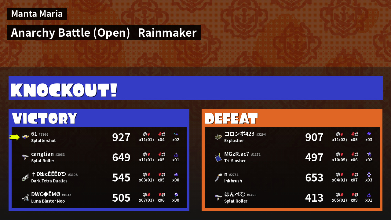 | Mode | Rainmaker - Anarchy Battle (Open) | ||