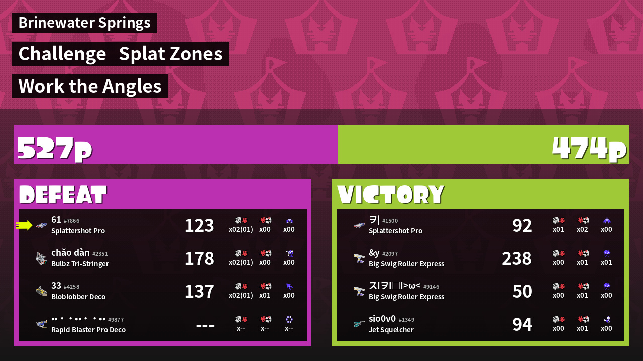 | Weapon | Splattershot Pro ( Angle Shooter / Crab Tank) | ||