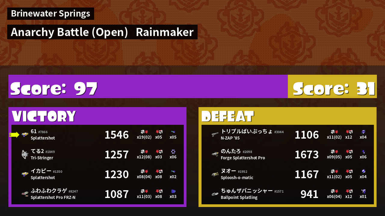 | Mode | Rainmaker - Anarchy Battle (Open) | ||