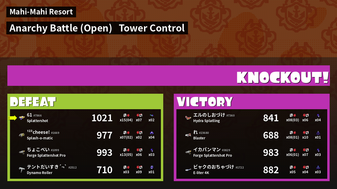 | Mode | Tower Control - Anarchy Battle (Open) | ||
