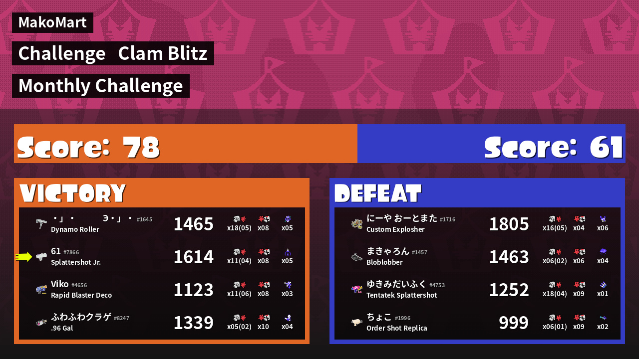 | Weapon | Splattershot Jr. ( Splat Bomb / Big Bubbler) | ||