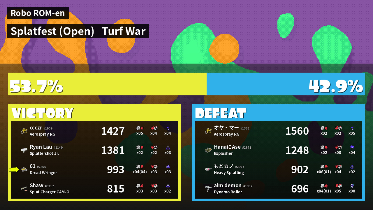 | Medals | #1 Super Jump Spot #1 Splat Assister #2 Overall Splatter | ||