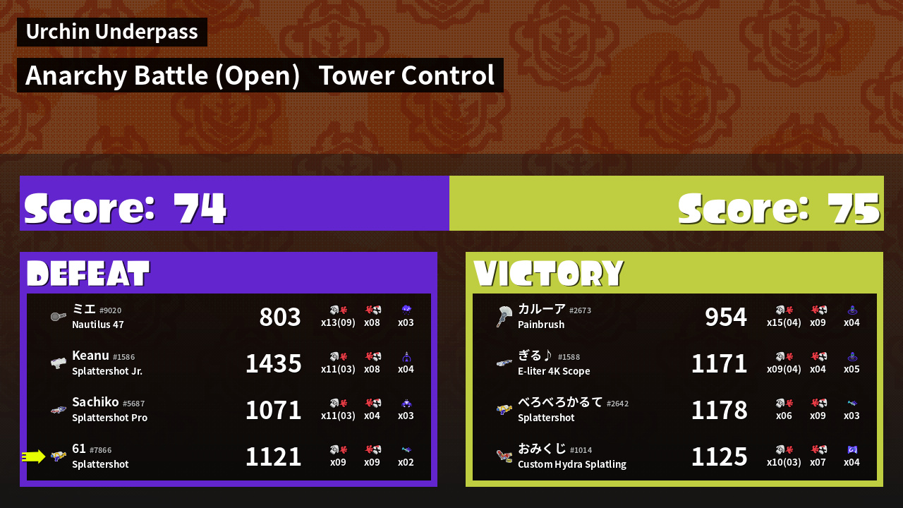 | Mode | Tower Control - Anarchy Battle (Open) | ||