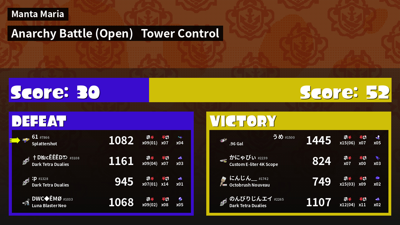 | Mode | Tower Control - Anarchy Battle (Open) | ||