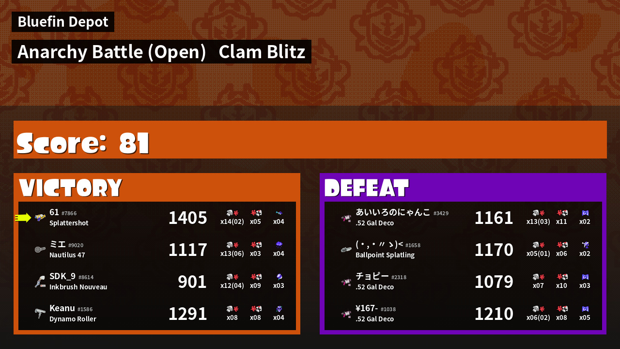 | Mode | Clam Blitz - Anarchy Battle (Open) | ||