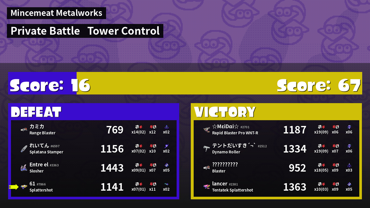 | Weapon | Splattershot ( Suction Bomb / Trizooka) | ||