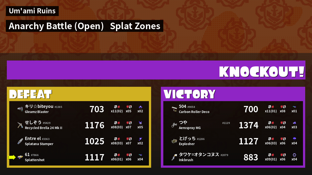 | Mode | Splat Zones - Anarchy Battle (Open) | ||