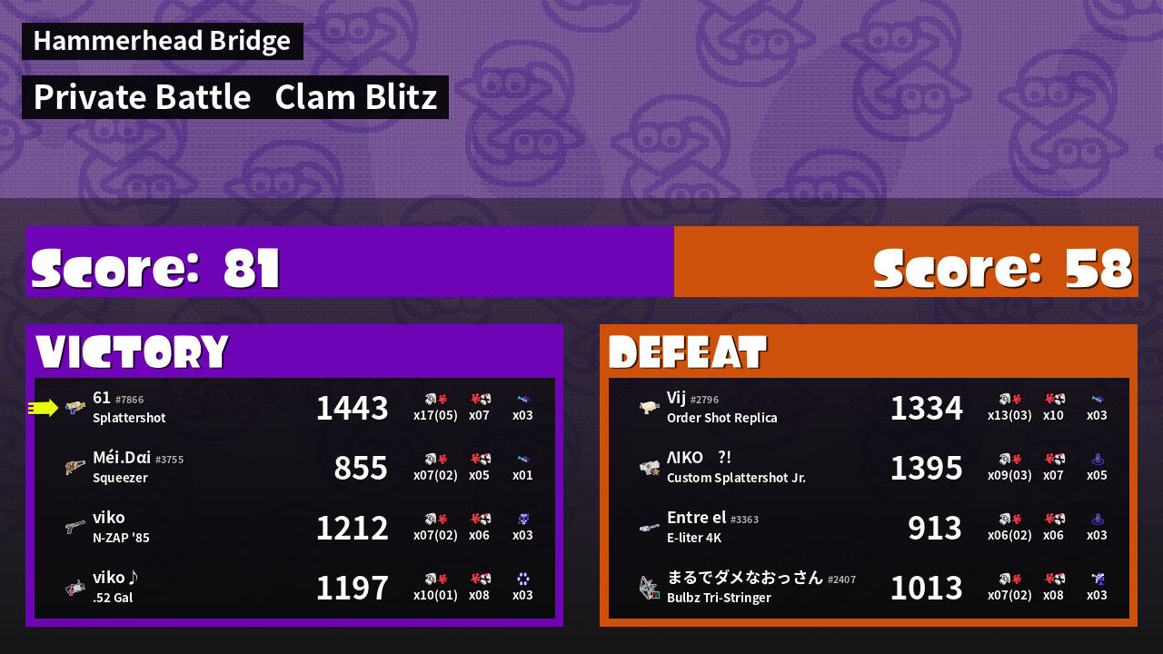 | Medals | #1 Overall Splatter #1 Turf Inker #1 Enemy Splatter | ||