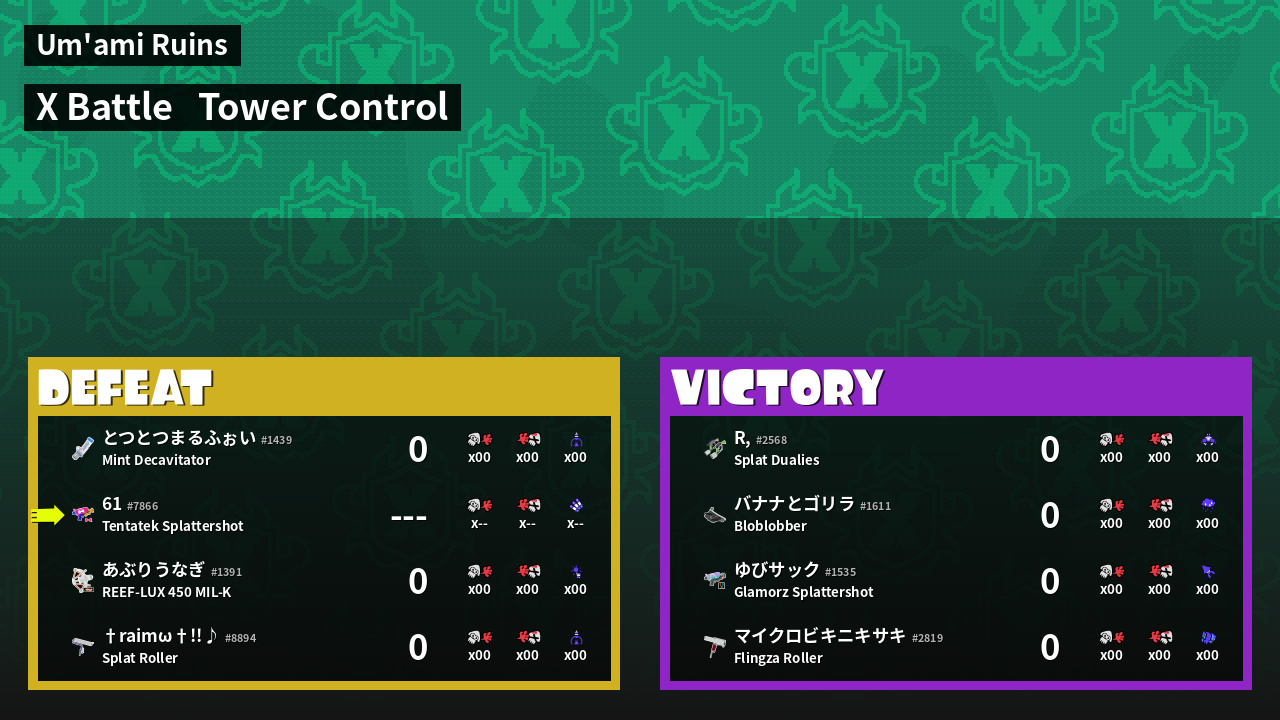 | Weapon | Tentatek Splattershot ( Splat Bomb / Triple Inkstrike) | ||