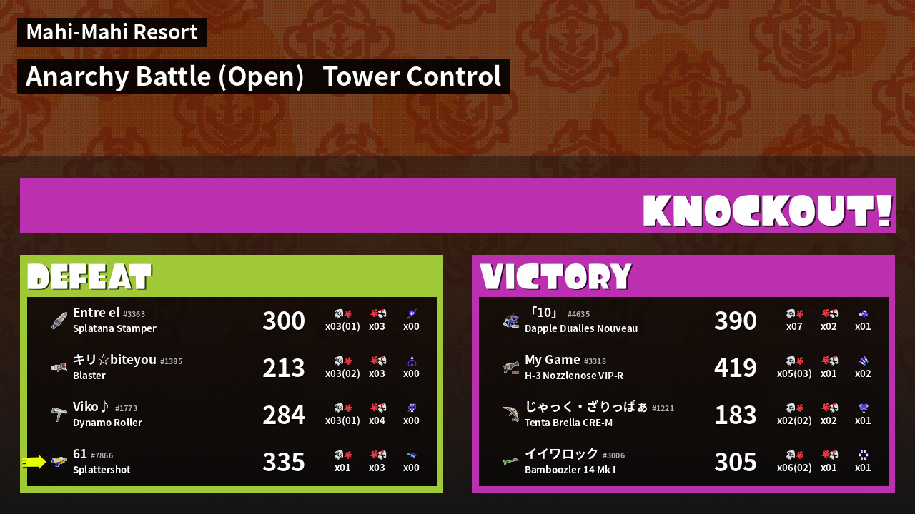 | Mode | Tower Control - Anarchy Battle (Open) | ||