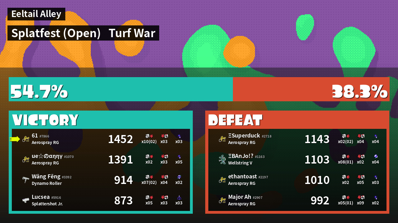 | Medals | #1 Overall Splatter #1 Turf Inker #1 Enemy-Base Inker | ||