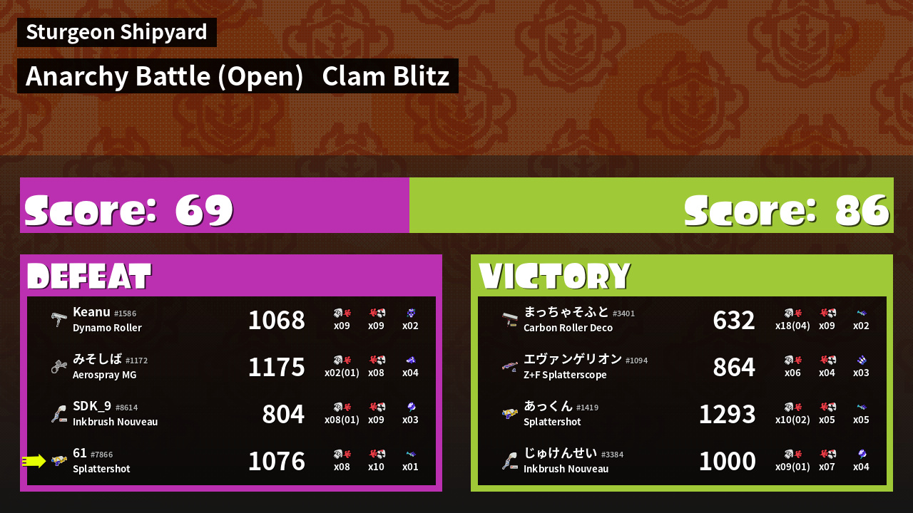 | Mode | Clam Blitz - Anarchy Battle (Open) | ||