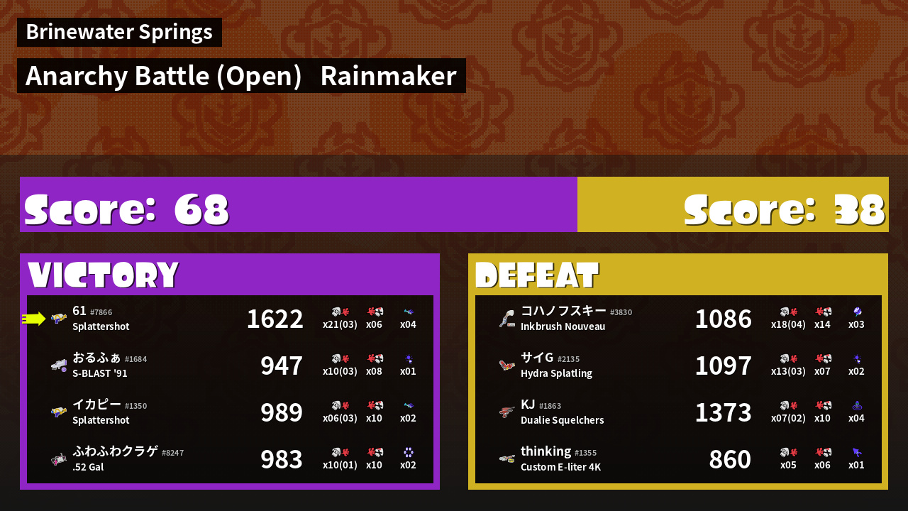 | Mode | Rainmaker - Anarchy Battle (Open) | ||
