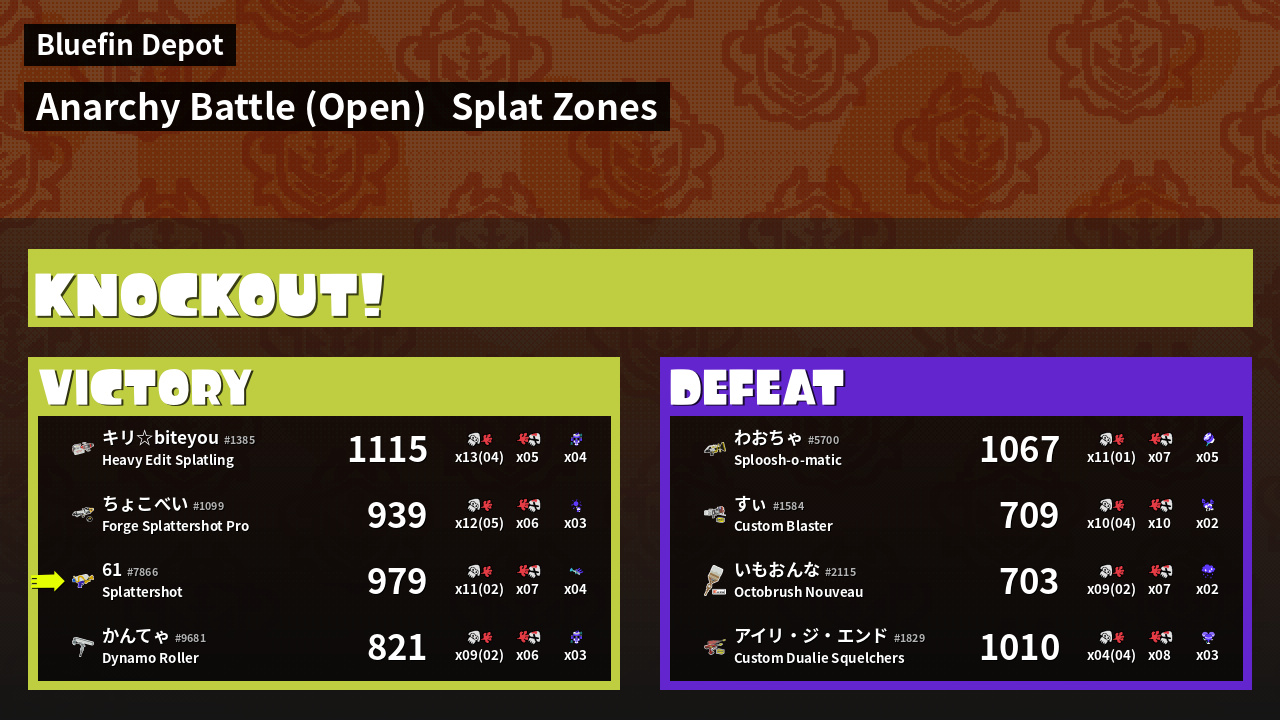 | Mode | Splat Zones - Anarchy Battle (Open) | ||