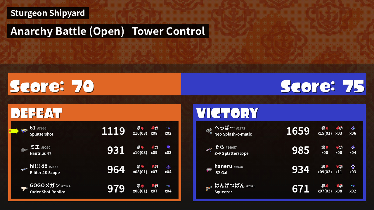 | Mode | Tower Control - Anarchy Battle (Open) | ||