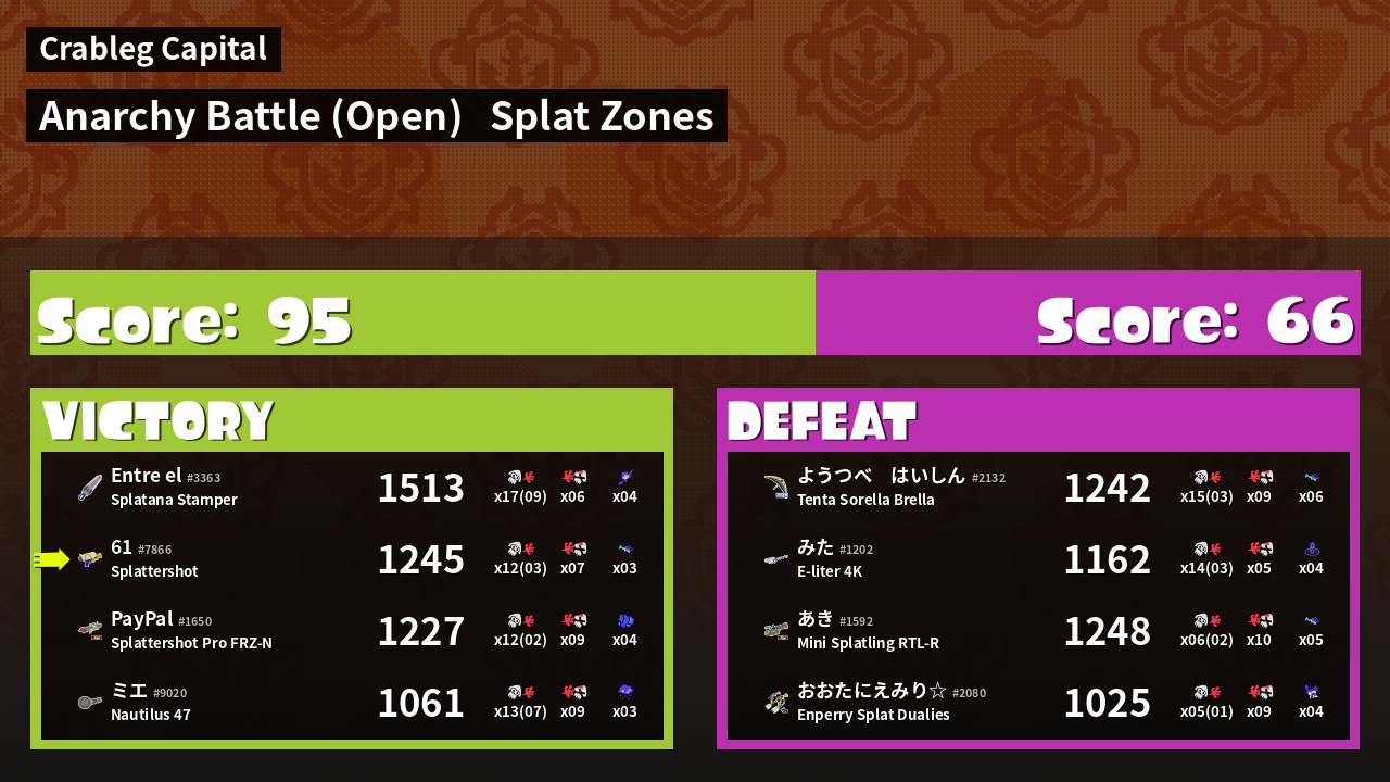 | Mode | Splat Zones - Anarchy Battle (Open) | ||