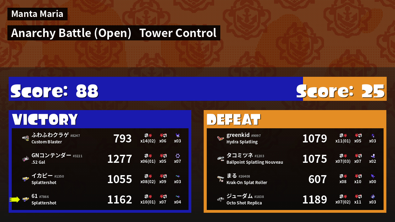 | Mode | Tower Control - Anarchy Battle (Open) | ||