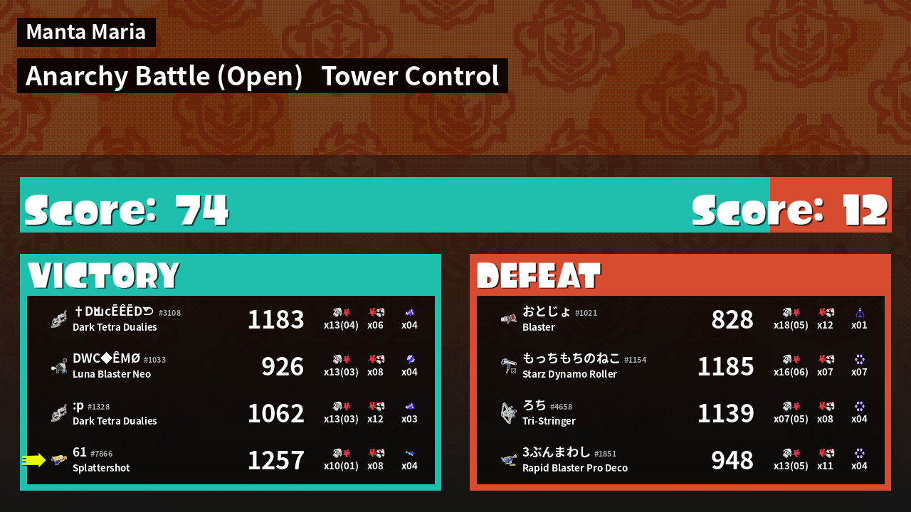 | Mode | Tower Control - Anarchy Battle (Open) | ||