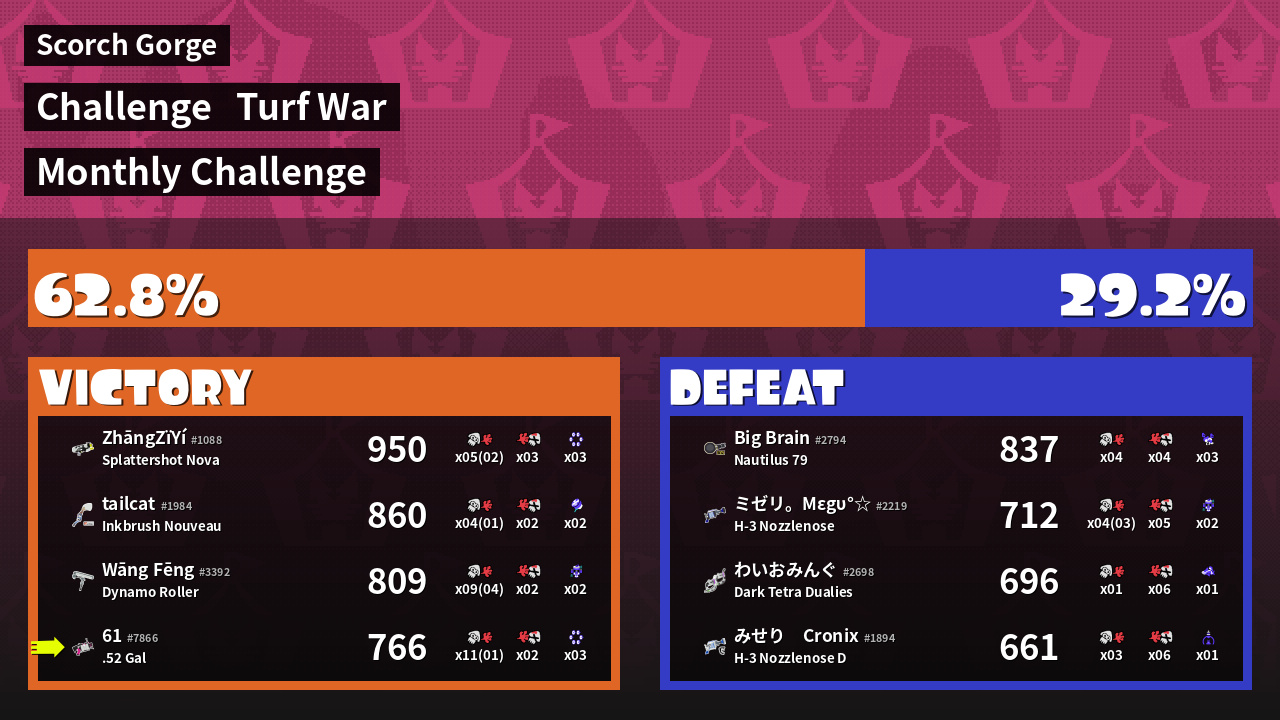 | Mode | Turf War - Challenge | ||