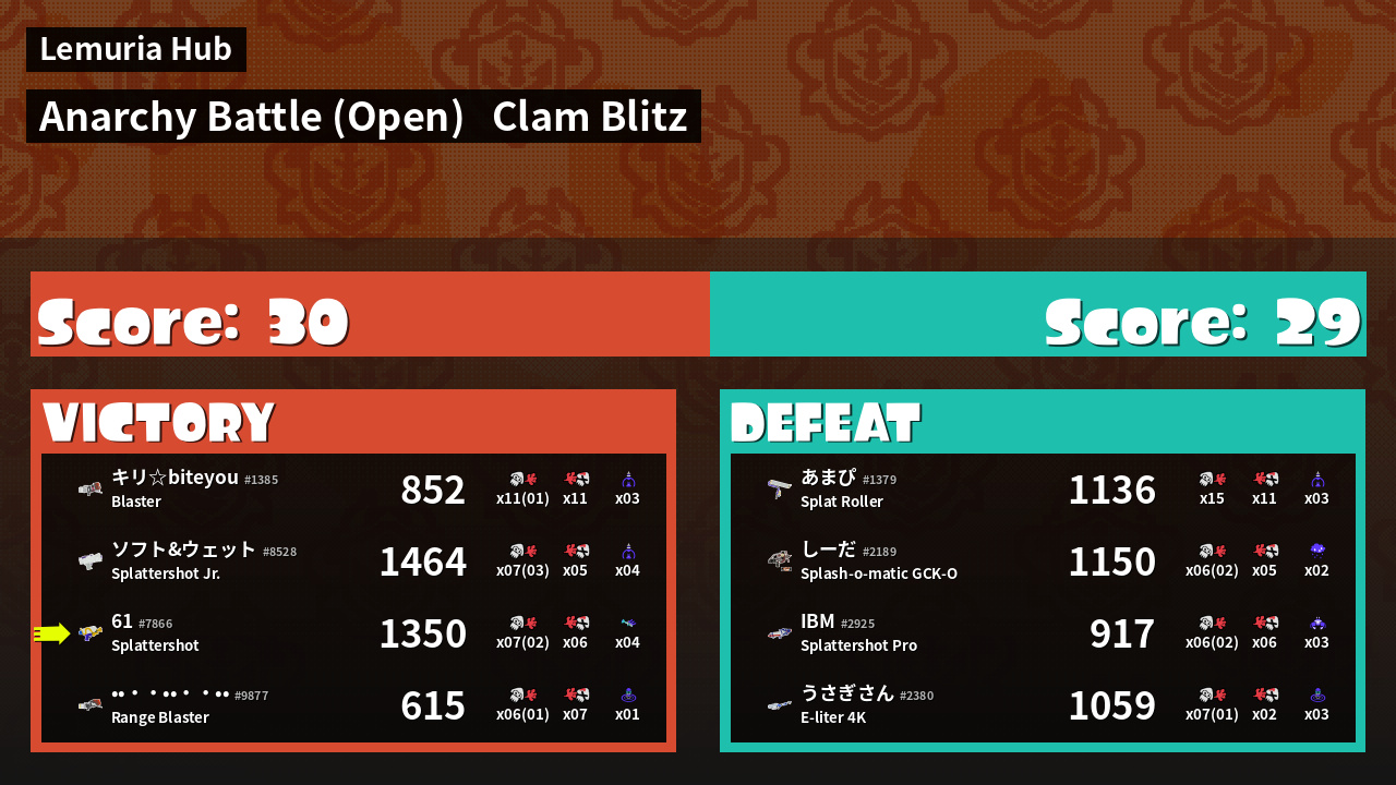 | Mode | Clam Blitz - Anarchy Battle (Open) | ||