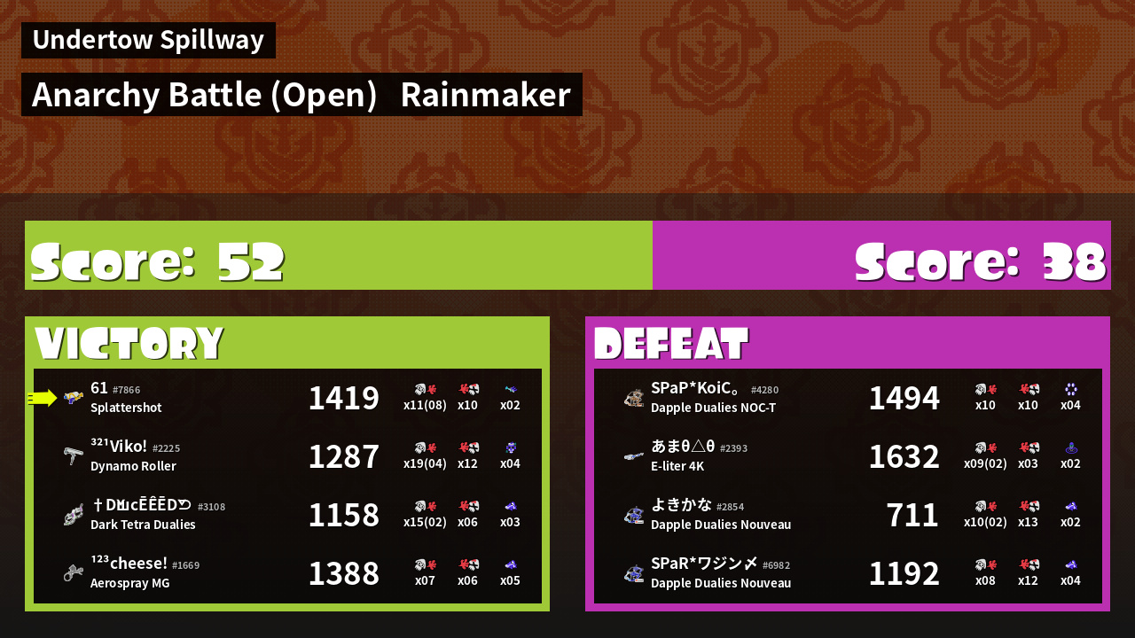| Mode | Rainmaker - Anarchy Battle (Open) | ||