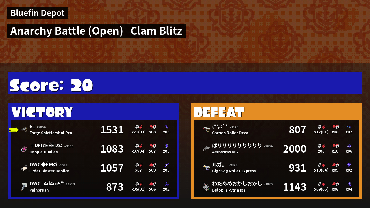 | Mode | Clam Blitz - Anarchy Battle (Open) | ||