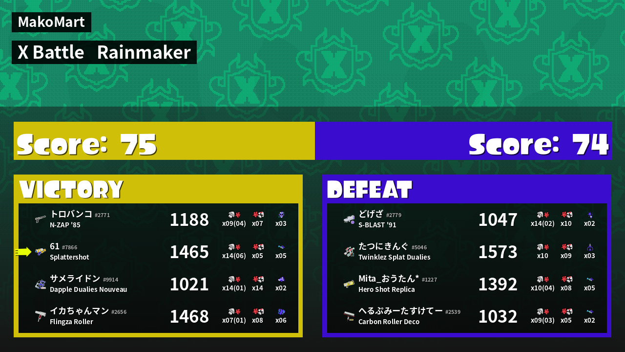 | Medals | #1 Overall Splatter #1 Splat Assister #1 Ground Traveler | ||
