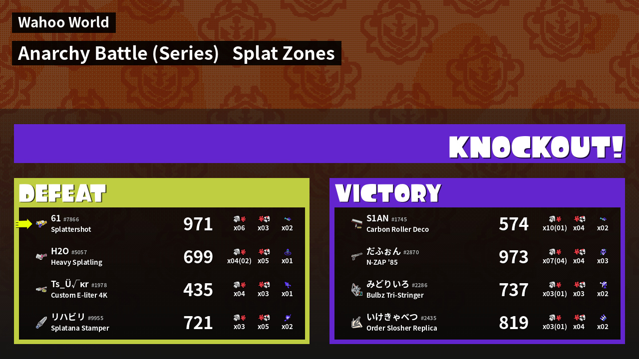 | Mode | Splat Zones - Anarchy Battle (Series) | ||