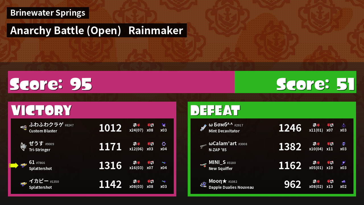 | Mode | Rainmaker - Anarchy Battle (Open) | ||