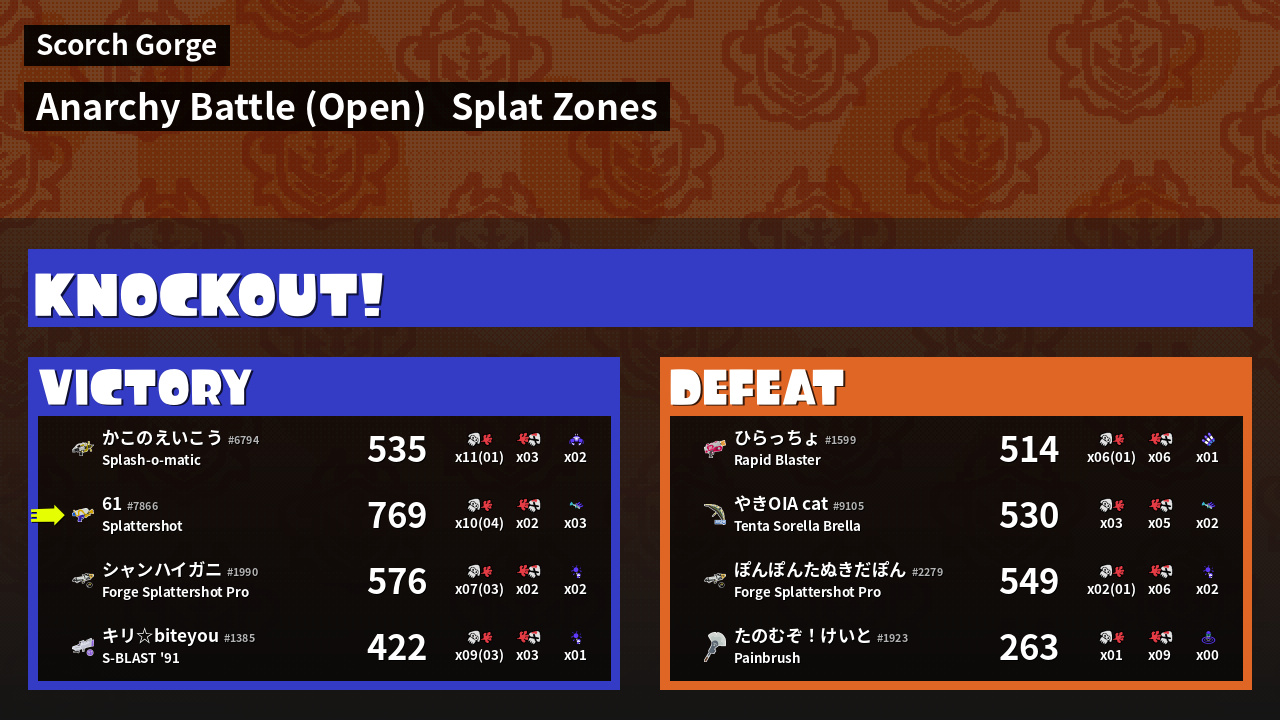 | Mode | Splat Zones - Anarchy Battle (Open) | ||