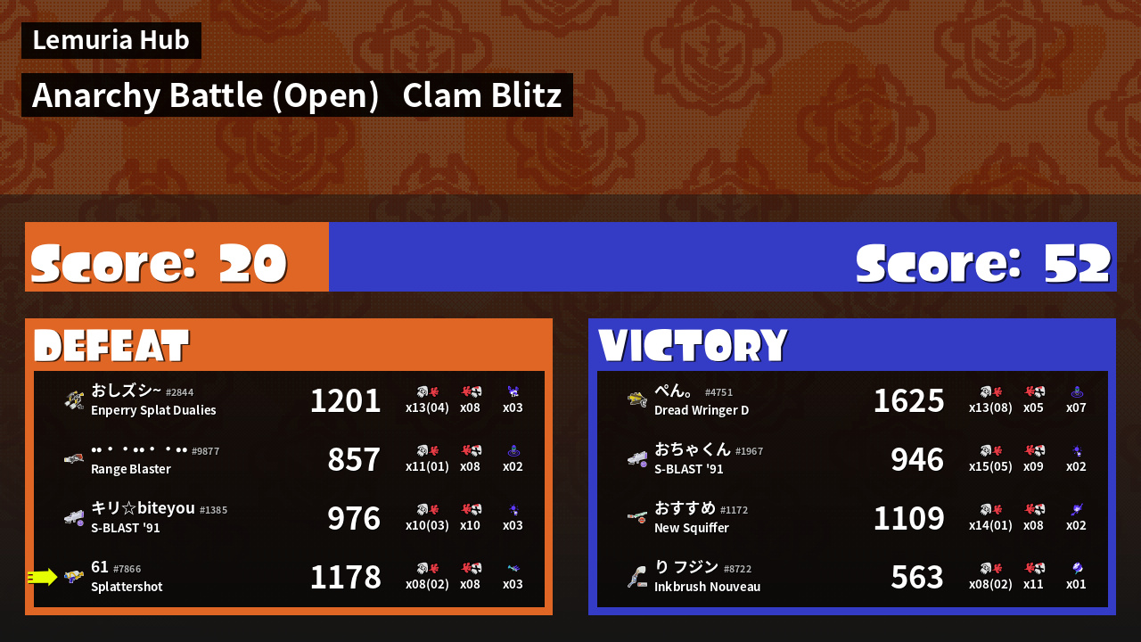 | Mode | Clam Blitz - Anarchy Battle (Open) | ||