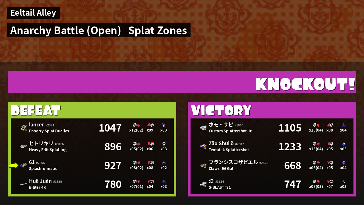 | Mode | Splat Zones - Anarchy Battle (Open) | ||