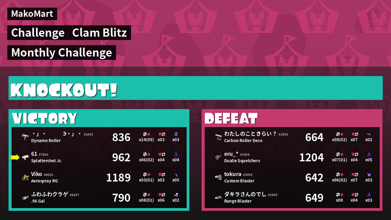 | Weapon | Splattershot Jr. ( Splat Bomb / Big Bubbler) | ||