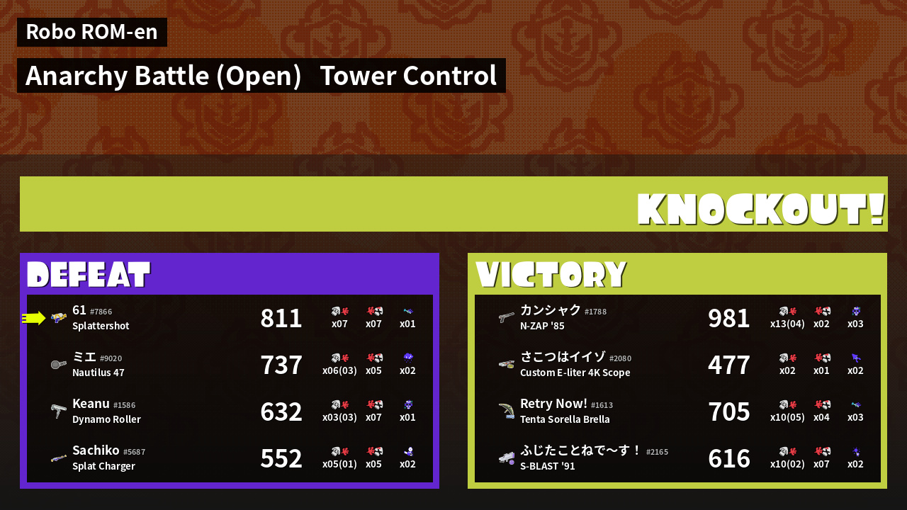 | Mode | Tower Control - Anarchy Battle (Open) | ||