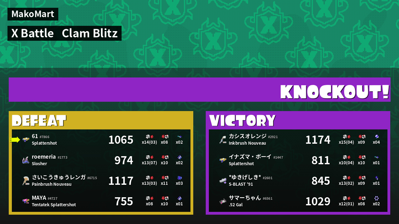 | Weapon | Splattershot ( Suction Bomb / Trizooka) | ||