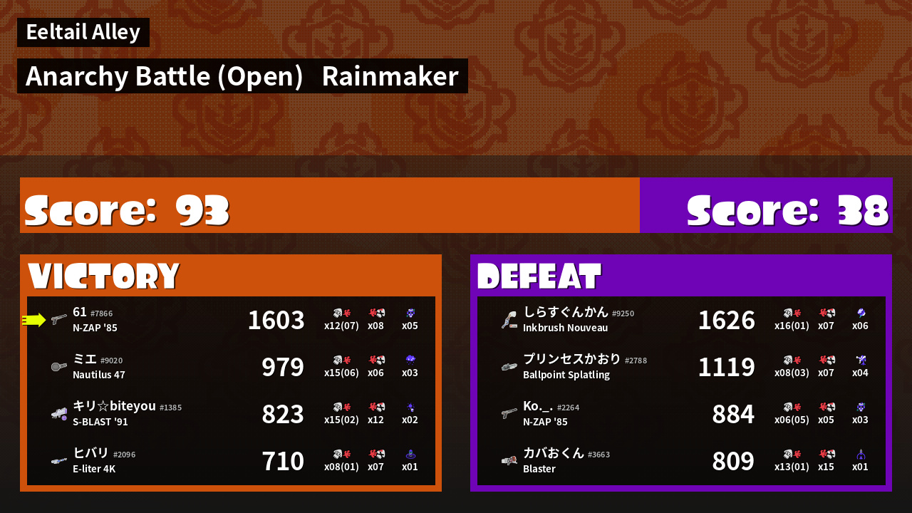 | Medals | #1 Score Booster #1 Turf Inker #1 Splat Assister | ||