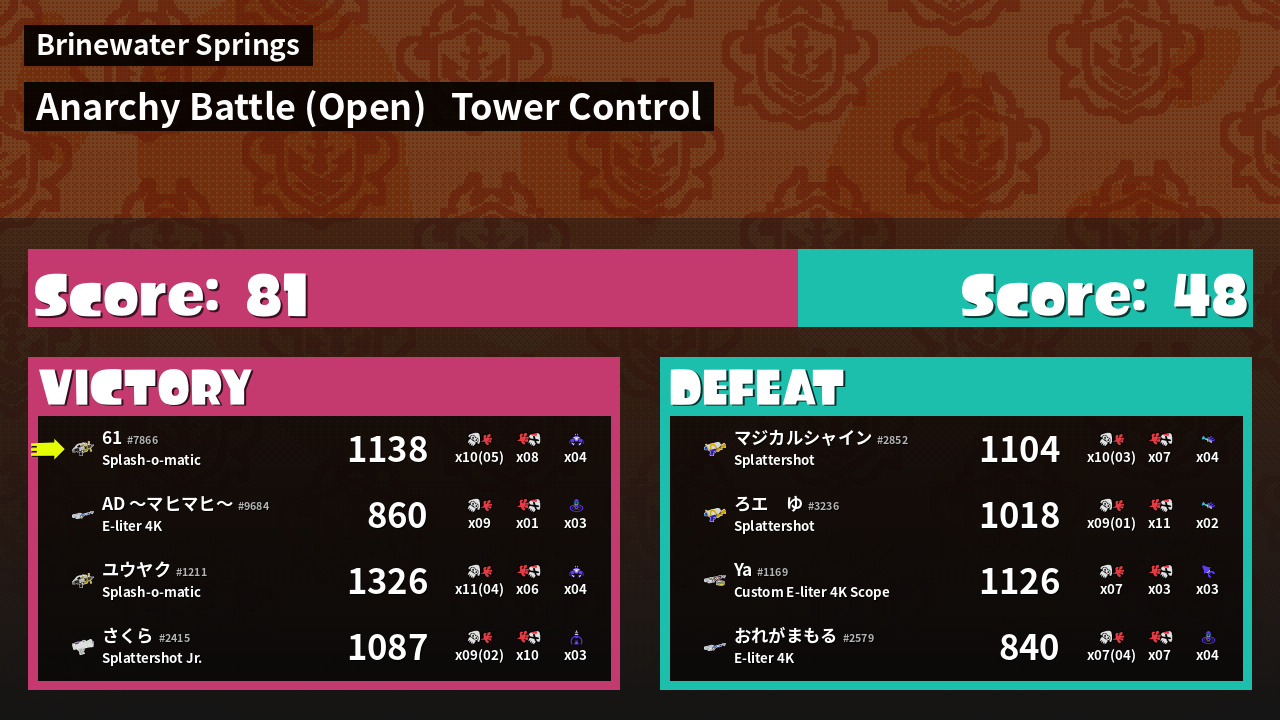 | Mode | Tower Control - Anarchy Battle (Open) | ||