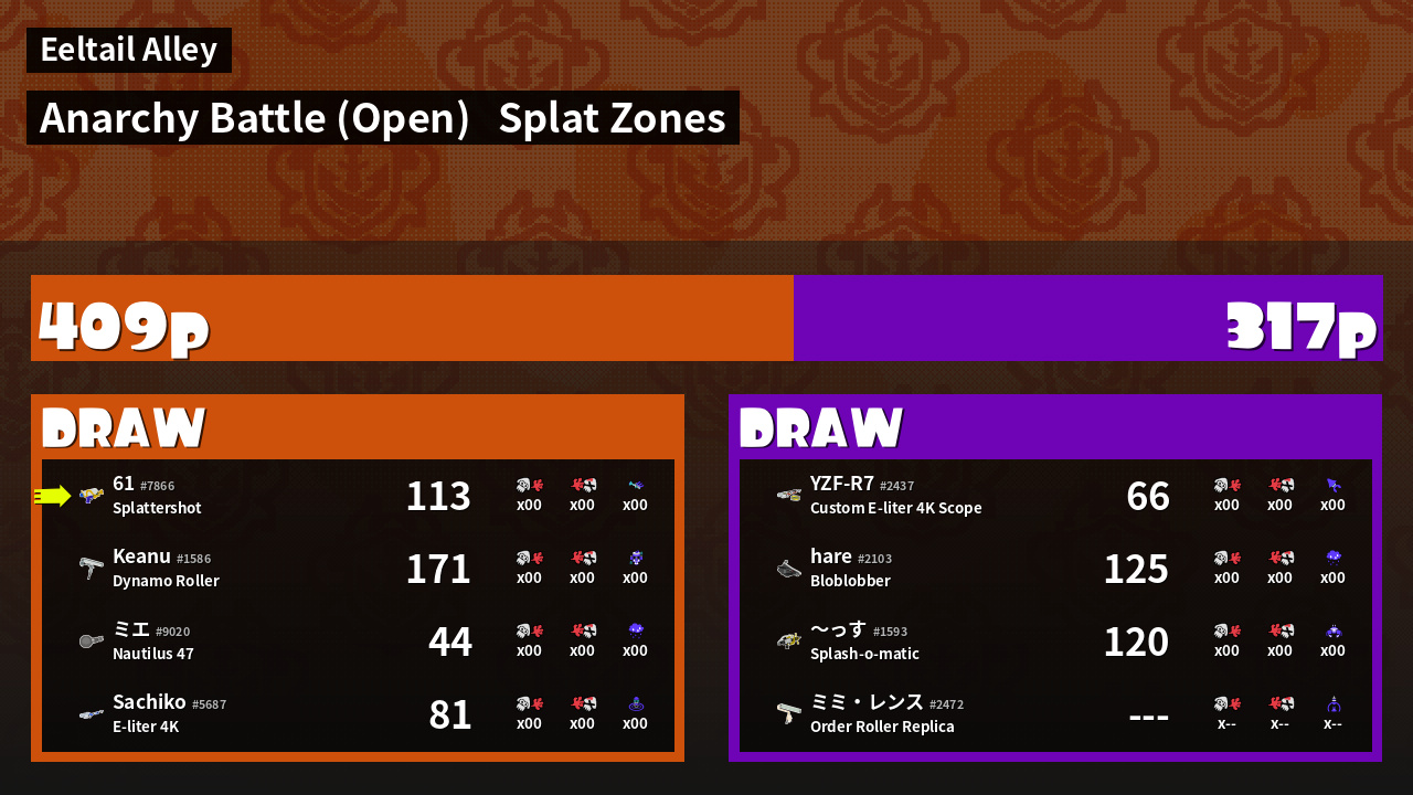 | Mode | Splat Zones - Anarchy Battle (Open) | ||