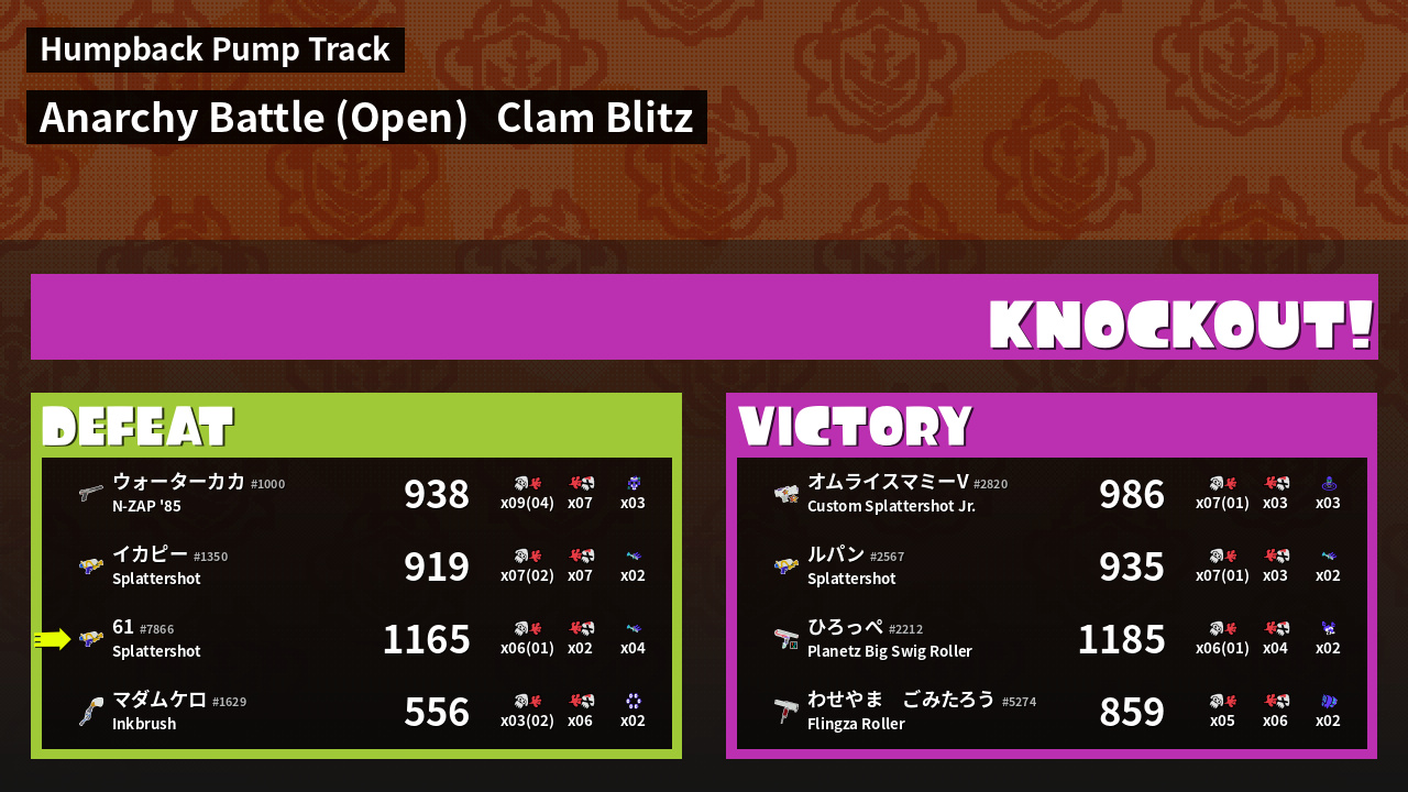 | Mode | Clam Blitz - Anarchy Battle (Open) | ||