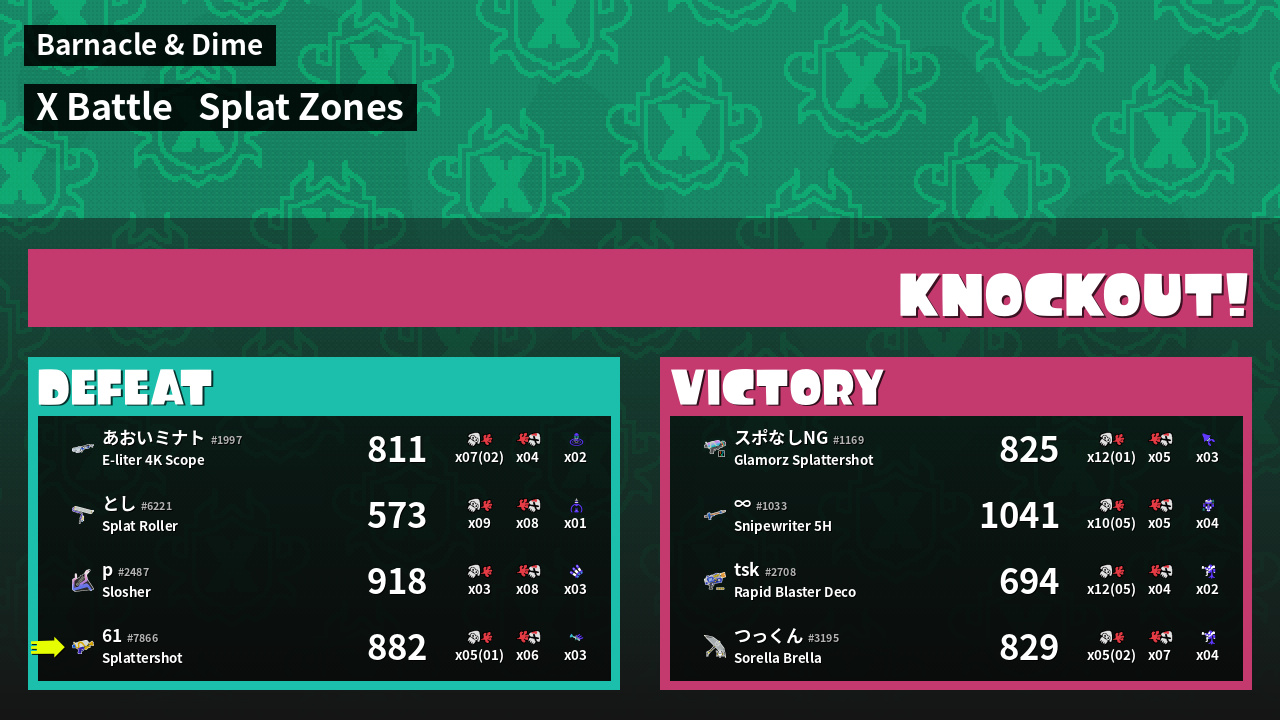 | Mode | Splat Zones - X Battle | ||