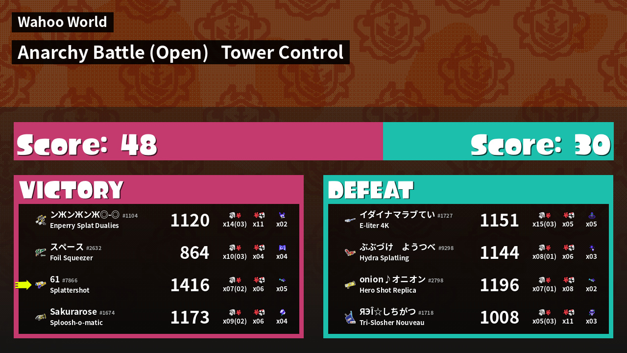 | Mode | Tower Control - Anarchy Battle (Open) | ||