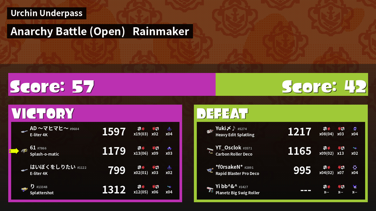 | Mode | Rainmaker - Anarchy Battle (Open) | ||