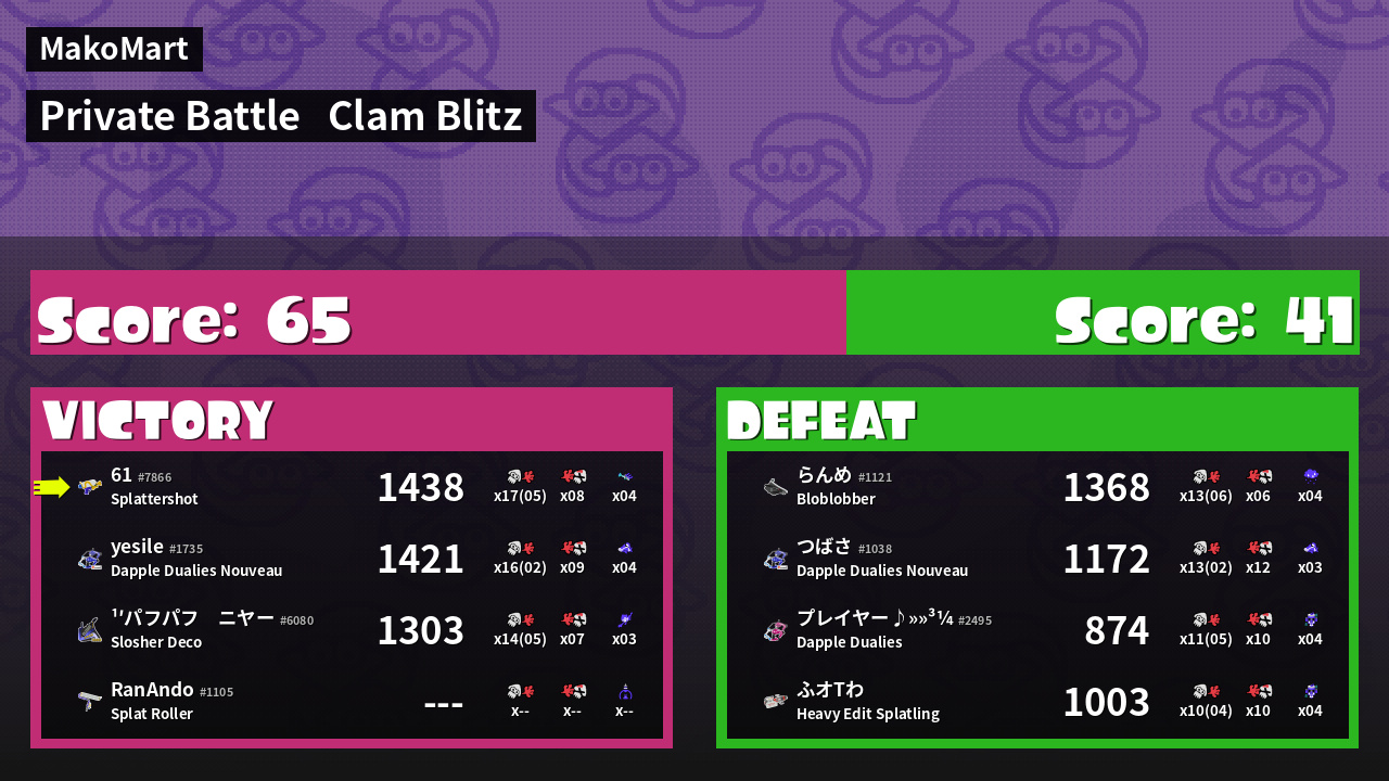 | Mode | Clam Blitz - Private Battle | ||