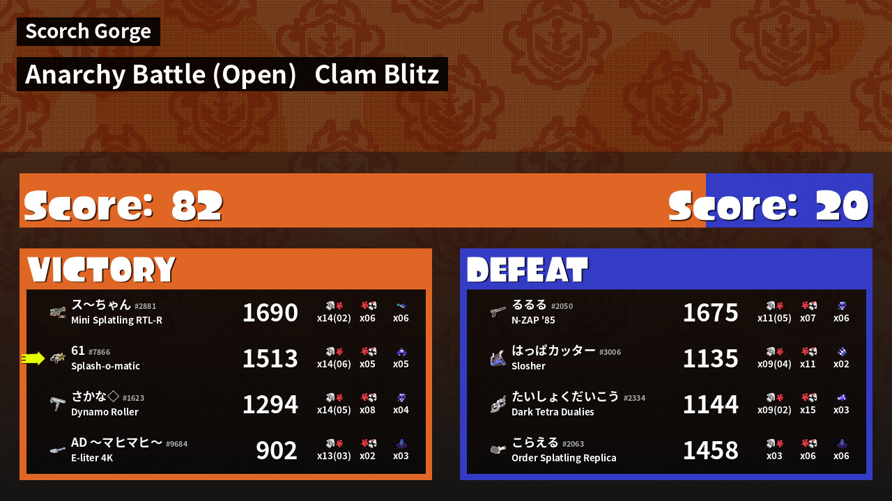 | Mode | Clam Blitz - Anarchy Battle (Open) | ||